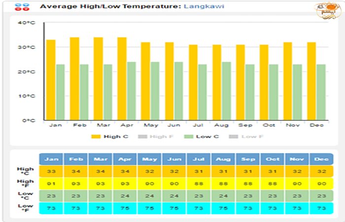 کمترین و بیشترین دمای لنکاوی
