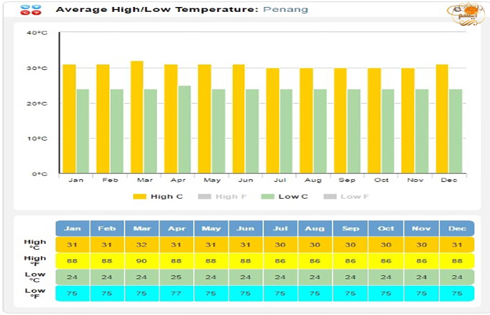 کمترین و بیشترین دما پنانگ