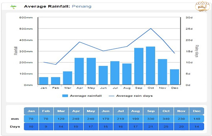 میانگین بارش باران پنانگ