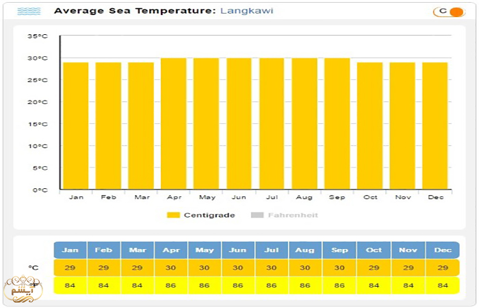 میانگین دمای دریای لنکاوی