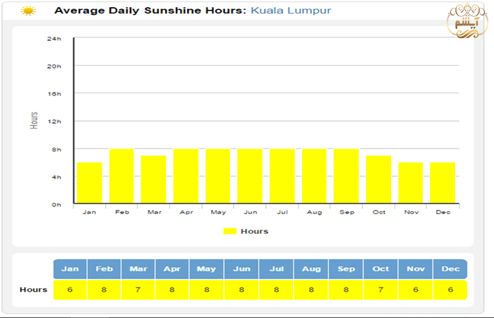 میانگین تابش روزانه آفتاب کوالالامپور