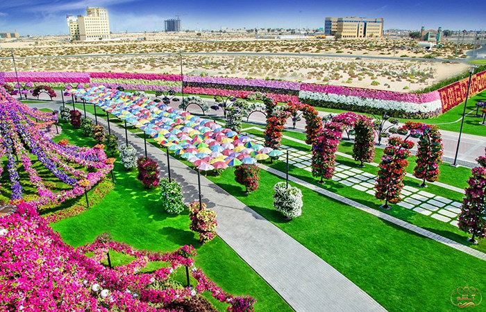 جای تعجب نیست که این باغ در کتاب رکوردها ثبت شده باشد. این باغ گل که در منطقه بیابانی 72000 متر مربع ساخته شده است، دارای 45 میلیون نوع گل از انواع مختلف از جمله گلهای نادر مانند گلبرگ، و گل سرخ است که از کشورهای مختلف از مصر تا ایالات متحده تشکیل شده است.