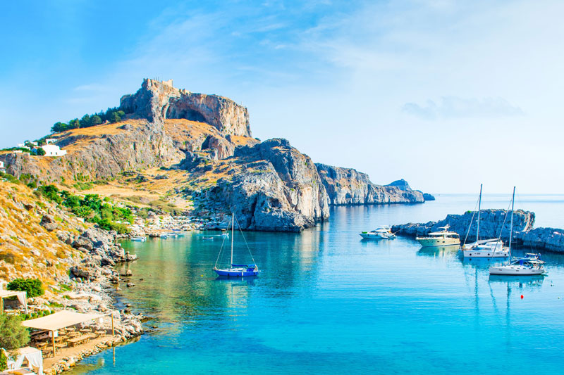 خلیج سنت پل در ساحل جنوب شرقی رودز در روستای لیندوز واقع شده است و دو سواحل برای انتخاب وجود دارد؛ بزرگترین آن ماسه طلایی است و در انتهای شمالی شن و ماسه است. کمی از سفر به ساحل وجود دارد، اما، یک بار وجود دارد، خلیج واقعا زیبا با آب آبی روشن و کامل برای شنا و snorkelling است. این یک ایده خوب است برای رسیدن به زود برای رسیدن به نقطه کمی خود را به عنوان آن می تواند شلوغ، اما فضای آرام است. سونا و چترهای موجود و همچنین یک کافه برای غذا و نوشیدنی وجود دارد.