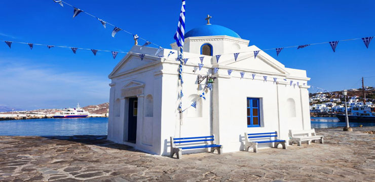 در داخل شهر اصلی میکونوس ، کلیسای پاراپورتیانی نمونه ای زیبا از کلیساهای تاریخی در این جزیره است.