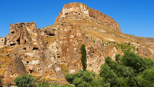 چند نمازخانه جالب برای دیدن وجود دارد - کلیسای Üzümlü Kilise (کلیسای انگور) که سالم ترین است - و یک مسجد بسیار زیبا که از سنگ تراشیده شده است. اما لذت واقعی این سایت پیچیدن در مسیرهای صخره ای ، گشت و گذار در فضای داخلی سیاه و سفید غارها و خیره شدن به منظره های باشکوه اطراف است.