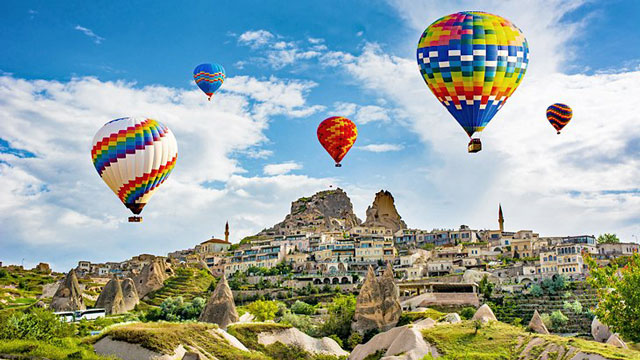 برای بسیاری از بازدیدکنندگان ، رفتن به بالون سواری در هوای صبح زود در کاپادوکیا یکی از نکات جالب ترکیه است. در فصل شلوغ ، بیش از 100 بالون هوای گرم دقیقاً پس از طلوع آفتاب به آسمان می آیند و چشم اندازهای پرندگان از دره ها و تشکیلات صخره ای آنها را به شما نشان می دهند. بالون سواری با هوای گرم حدود یک ساعت به طول می انجامد (با بسته های لوکس حدود 90 دقیقه طول می کشد) و در طول سال در دسترس است ، اگر هوا خوب باشد. همه تورها شامل پیکاپ و ترانسفر از هتل شما است.