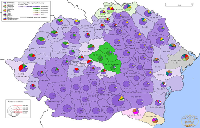 گروه های اقلیت رومانی شامل اوکراین (0.3٪)، آلمان (0.3٪)، و روس (0.2٪). انواع دیگر شامل ترک ها، صرب ها، کروات، یهودیان، لهستانی ها، بلغارها، چک، یونانی ها، ارمنی ها، تاتارها، و اسلواک هستند.