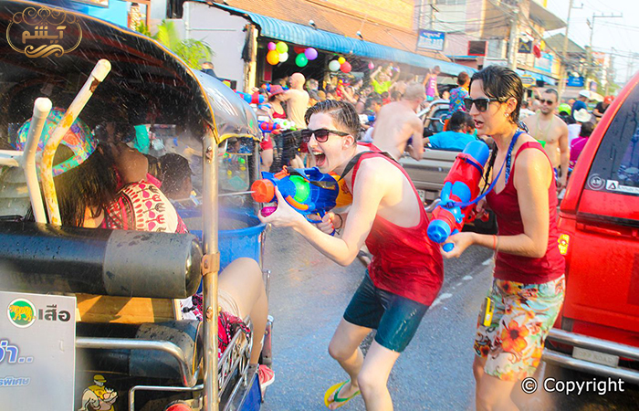 جشنواره Songkran :در اوایل ماه آوریل، هر فرد در چیانگ مای با پرتاب آب به استقبال سال نو تایلندی میروند. مردم تایلند نیز از معابد بازدید میکنند، و آب بر روی تصاویر بودا و بزرگان میریزند.