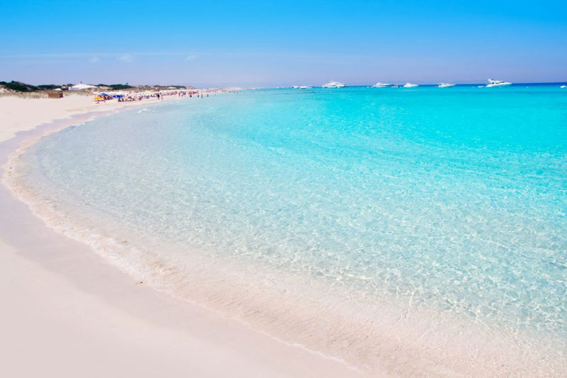 در Formentara در جزایر بالئاریک، ساحل شن و ماسه سفید نرم، آب شفاف، امکانات و در افق ایبیزا همگی یک ساحل جذاب را به وجود می آورد. علاوه بر این که فوق العاده زیبا است، همچنین فعالیت های آبی متعددی در اینجا وجود دارد.