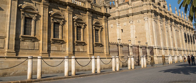 آیا توجه کرده اید که کلیسای جامع توسط مجموعه ای از ستون ها که با زنجیر به هم متصل شده اند احاطه شده است؟ این موارد نشان دهنده محدوده صلاحیت مدنی و کلیسایی در قرن شانزدهم بود: در آن زمان حق پناهندگی به این معنی بود که مقامات شهری که به عنوان آگواکیل شناخته می شوند اجازه ورود به فضاهای مقدس برای بازداشت افراد را ندارند ، واقعیتی که جنایتکاران معمولی اغلب برای فرار از عدالت از آن استفاده می کردند. قدیمی ترین ستون ها ستون هایی هستند که از لا ژیرالدا تا پوئرتا سان میگوئل ادامه دارند. بیشتر آنها منشا رومی دارند و از ایتالیکا آورده شده اند تا در کلیسای جامع مجدداً مورد استفاده قرار گیرند.