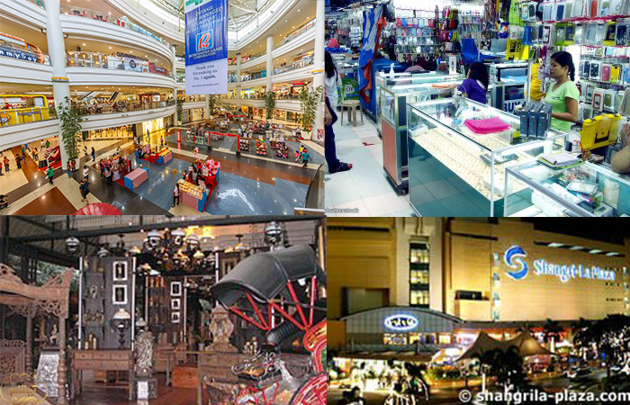 فرهنگ مراکز خرید شهر مانیل احتمالا یکی از نشانه های انگیزشی آمریکائی شدن فیلیپین است. تقریبا هر قسمت شهر دارای یک مرکزخرید است که عمدتا در ساعت 21:00 بسته می شود. مانیل با داشتن سومین مرکز بزرگ خرید در جهان، اعتبار فرهنگ خرید را در این شهر نشان میدهد. مراکز خرید فوق العاده عبارتند از: Greenbelt 4 , 5 در مرکز Ayala و Bonifacio High Street در Bonifacio Global City قرار دارند، جایی که مغازه های مشهور مانند Mango، Armani و Bulgari وجود دارد. در بازار Divivorya محصولات را به طور عمده با قیمت های پایین به فروش میرساند. شما می توانید تقریبا هر چیزی را در این بازار پیدا کنید از وسایل آشپزخانه و انواع لباس و اسباب بازی ها و صنایع دستی، سوغاتی و مبلمان.همچنین برای داشتن یک احساس واقعی در مانیل به بازار "tiangge" بروید، یک بازار، که همه چیز را می توان تازه خریداری کرد.