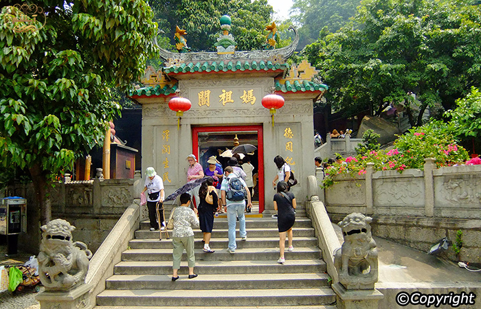 معروف ترین و قدیمی ترین معبد که در سال 1488 میلادی به عنوان معبد چینی در ماکائو ساخته شده است معبد آ-ما می باشد، این ساختمان تائوستانی قبل از استعمار پرتغال ساخته شده بود بنابراین اهمیت عظیم تاریخی این جزیره و پیشینه مذهبی آن قبل از استعمار غربی است. الهه A-Ma همچنین مکانی است که نام آن از ماکائو است. هنگامی که پرتغالیها 400 سال پیش در دریا ساکن شدند، نزدیک این معبد بودند. هنگامی که آنها از مردم محلی نام ای سرزمین را پرسیدند، آنها (مردم محلی) اشتباه می کردند، فکر می کردند که پرتغالی ها نام معبد را می پرسند، بنابراین آنها پاسخ دادند: "Ma Ge"، که نام معبد بود؛ این بعدا به ماکائو تحریف شد.