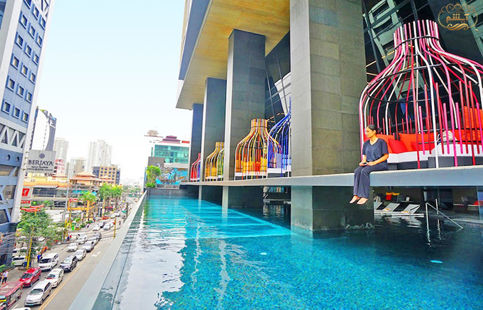 معماری مدرن دیوارها و راهروهایی با وسایل طلایی رنگ چشم هر مسافری را خیره میکند. استخر روباز چیزی است که شما از یک هتل لوکس انتظار دارید. استخر در پشت بام قرار گرفته و سر ریز آب همچون آبشار بر روی ساختمان میریزد.