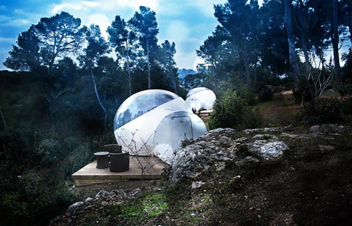 یک مجتمع اقامتی غیرمتعارف با تنها شش حباب در یک محیط طبیعی، به دور از شلوغی شهر، مکان مناسبی برای گذراندن یک تعطیلات آرامش بخش است. بر خلاف افکار اولیه ما، صاحبان هتل حریم خصوصی را تضمین میکنند. طراحی داخلی هر حباب دارای هویت خاص خود است و دکوراسیون بسته به تمایل گردشگران متفاوت است. نام واحدهای حباب، فضای داخلی را آشکار میکند؛ مانند: زین، طبیعت، زرق و برق، ۱۰۰۱ شب یا شیک و طراحی. طبیعت مورد علاقه ما، با پوشش چمن و مکانی آرام است. این مکان یکی از جاذبههای توریستی فرانسه محسوب میشود.