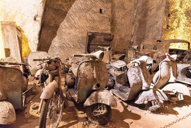 دسترسی به گالری های عظیم و تونل های شبح وار آن از طریق تور انجام می شود که در طی آن می توانید مخازن و انواع آثار و بقایای باقی مانده از مصارف مختلف آن از جمله اتومبیل های قدیمی ، وسپا ، موتورسیکلت و قطعات مجسمه سازی و جزئیات معماری را مشاهده کنید.