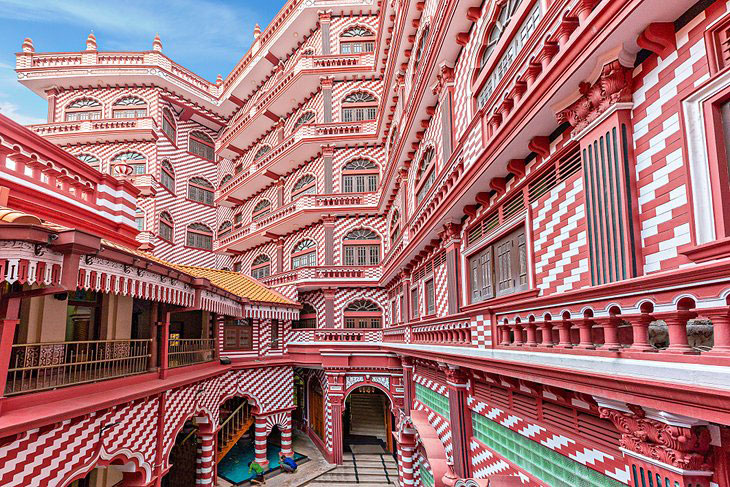 در داخل ، این مسجد آثار هنری و طراحی مذهبی معمولی را به نمایش می گذارند ، اما این نمای بیرون مسجد است که آن را فوق العاده می کند. این آجرهای قرمز و سفید بیرونی حیرت انگیز با مارپیچ ها ، چرخش ها و الگوهای متناوب مرتب شده اند. این ویژگی همچنین باعث شده است که این مسجد به یک مکان دیدنی بصری تبدیل شود و از کشتی های که وارد اسکله میشوند به راحتی قابل تشخیص باشد.