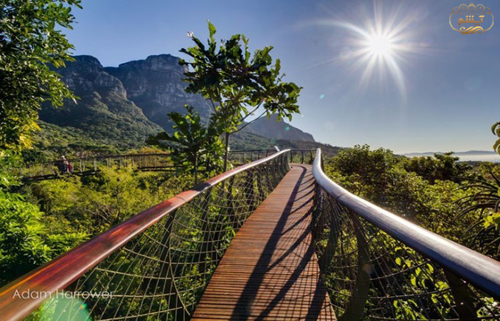 بوم اسلنگ، کیپ تاون، آفریقای جنوبی دارای 130 متر (427 فوت) طول در میان درختان گردشگاه تاج را دار میباشد و یکی از مسیرهای پیاده روی گردشگران حرفه ایست! این پل خوش منظره و زیبا در بالای درختان قرار گرفته است و یکی از تجربیات منحصر به فردترین تجربیات شما را رقم خواهند زد. در باغ گیاه شناسی ملی کریستن شما شاهد این صحنه ی زیبا خواهید بود. ، این گردشگاه زیبا به دلیل طبیعت منحصر به فرد و زیبا و کوههای سر به فلک کشیده و استوار اهمیت فراوان دارد و سالیانه جمعیت زیادی از گردشگران را به خود جذب میکند. این پل توسط مارک توماس معماران و مهندسان هنری فاگان و همکاران ساخته و پرداخته شده است. نقطه ی شروع ان در جنگل است و سپس به تدریج صعود میکند و بالا میرود تا زمانی که بالاترین نقطه از 12 متر (49 فوت) می رسد. واقعا شبیه به داستان های افسانه ای به نظر میرسد مانند یک راهرو سحر و جادو شده از داستانهای جن و پری و شما قطعا حتما باید یکبار هم که شده از این پل شگفت انگیز چوبی دیدن کنید. بازدید از پارک کریستن که قدمت ان به بیش از یک قرن پیش برمیگردد یکی از فعالیت های مورد علاقه ی مردم محلی این منطقه است. و حفظ گیاهان نادر اجازه می دهد تا به یادگیری زیادی در مورد منطقه ی فلور برسید. گفته شده است که بهترین زمان برای بازدید از پارک ماه های اوت و نوامبر است. اما تقریبا در هر فصلی جذاب است و پوشش گیاهی و جانوری متنوع و زیبایی را شاهد خواهید بود. و فراموش نکنید که پارک زیبای بوم اسلنگ همیشه و بر روی همه باز است. دسترسی به این پارک زیبا بسیار راحت است و تنها 13 کیلومتر (8 مایل) از پایتخت افریقای جنوبی فاصله دارد از همین رو دسترسی آسان از کیپ تاون و ایستگاه MOWBRAY توسط اتوبوس وجود دارد. اگر سفر با خودرو را دوست دارید کافیست 13 کیلومتر به سمت جنوب برانید تا به این پارک زیبا برسید.
