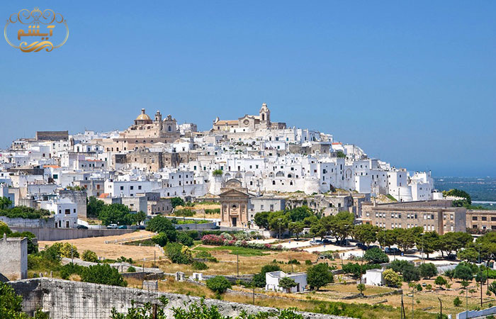 یکی از بهترین شهرهای منطقه Puglia، شهر Ostuni است؛ با کلیسای جامع گوتیک قرن پانزدهم، و مرکز تاریخی درخشان که به رنگ سفید پوشیده شده است. این شهر در استان بریندیسی، حدود ۸ کیلومتر دورتر از سواحل فریبنده Adriatic واقع شده و تصویری بینظیر از معماری مدیترانهای با حال و هوای قرون وسطایی به نمایش میگذارد.