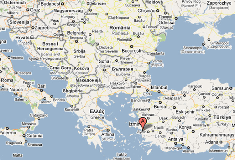 این شهر در 95 کیلومتری جنوب ازمیر و 55 کیلومتری (آیدین) قرار دارد.