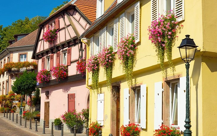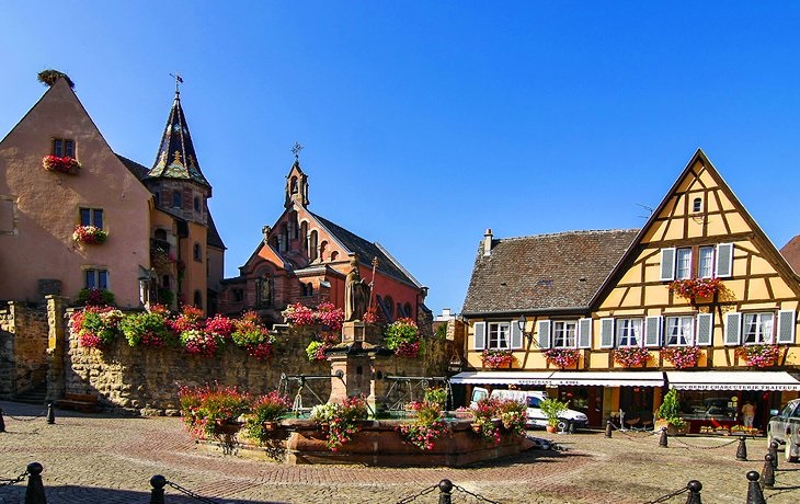 روستای معمولی آلزاس Eguisheim (پنج کیلومتری کولمار) در دره ای آفتابی که توسط کوهپایه های پوشیده از انگور کوه های Vosges احاطه شده است، قرار گرفته است.