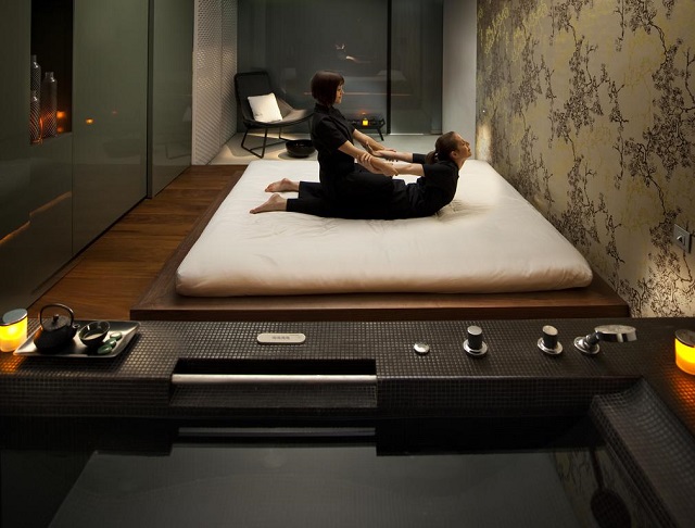 آبگرم ماندارین اورینتال طیف وسیعی از درمان ها را ارائه می دهد. دسترسی به آبگرم رایگان است و شامل استخر سرپوشیده ، جکوزی ، حمام و سالن بدنسازی 24 ساعته است. اسپا همچنین دارای سوئیت هایی برای زوجین است. هدفون ، حوله و نوشیدنی های خنک برای ورزشگاه در نظر گرفته شده است.