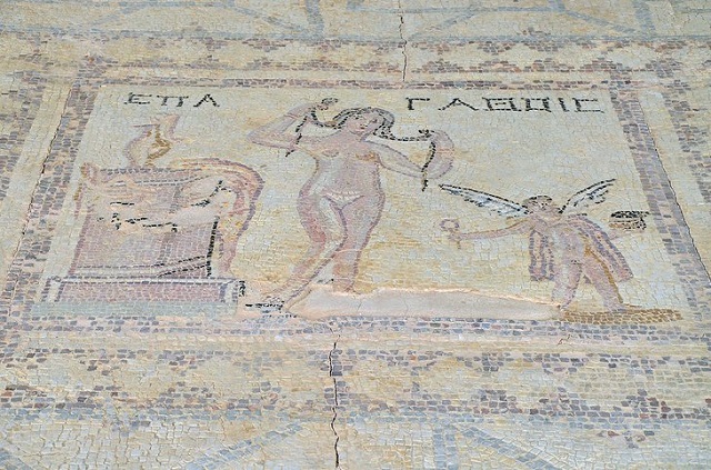 کفهای موزاییکی زیبا در اینجا به خوبی حفظ شدهاند. به دنبال موزاییک آشیل که به شکل یک زن مبدل شده است و موزاییک معروف چهار تابلویی که یک کبک و خدای Ktisis را به تصویر می کشد، بگردید.