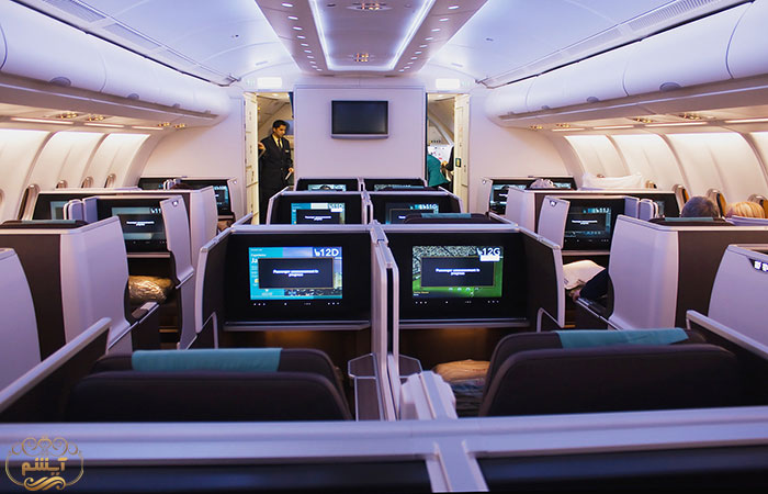 کلاس کسب و کار - پرواز هوایی عمان صندلی های کلاس تجاری تخت شو با طول77.5 اینچی