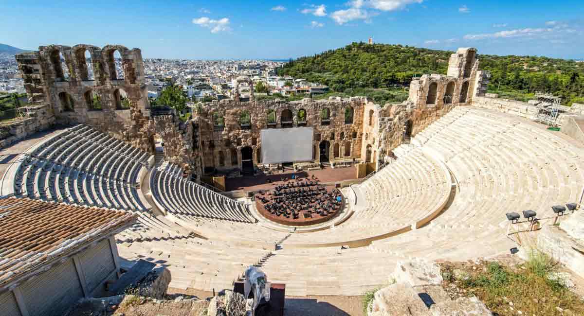 منطقه Herodes Atticus در آتن در سال 174 پس از میلاد ساخته شد و در سال 1955 به طور کامل بازسازی شد، این منطقه یک جواهر خیره کننده است که در دامنه جنوب غربی تپه آکروپولیس قرار دارد. این یکی از بهترین مکان های جشنواره آتن است که هر ساله از ماه می تا سپتامبر برگزار میشود و میزبان بسیاری از هنرمندان مشهور مانند ماریا کالاس، لوچیانو پاواروتی، فرانک سیناترا، فلورانس، جترو تول بوده است. روی صندلی های مرمری ظریف آن در زیر مجموعه جذاب طاق های رومی، بیش از 4000 نفر را میتوان جای داد.