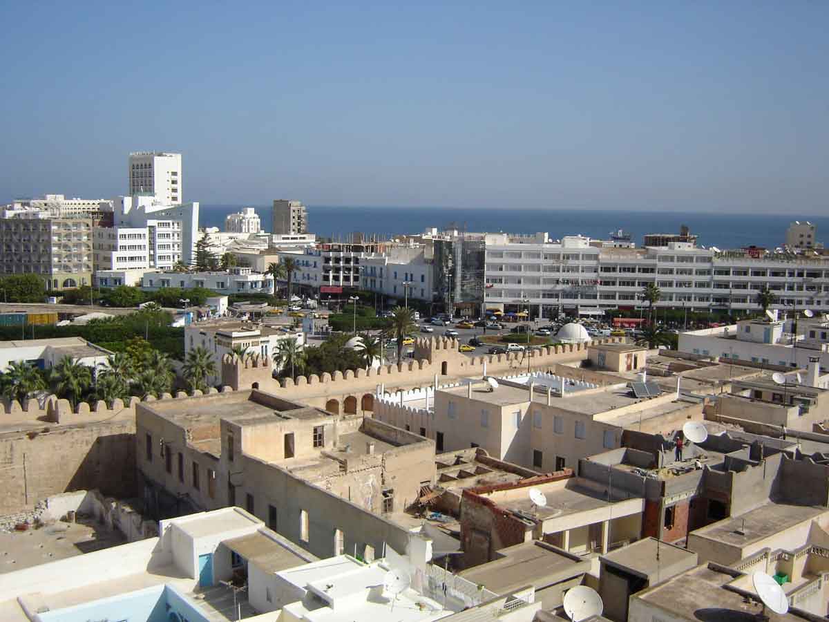 بافت قدیمی شهر، معروف به مدینه، با دیوارهای قرن پانزدهمی، کوچههای باریک و بازارهای محلی، نمونهای برجسته از معماری سنتی تونسی است. در این منطقه، مغازههای صنایع دستی، فرشها و ظروف سنتی به فروش میرسد که نشاندهنده فرهنگ و هنر تونس هستند.